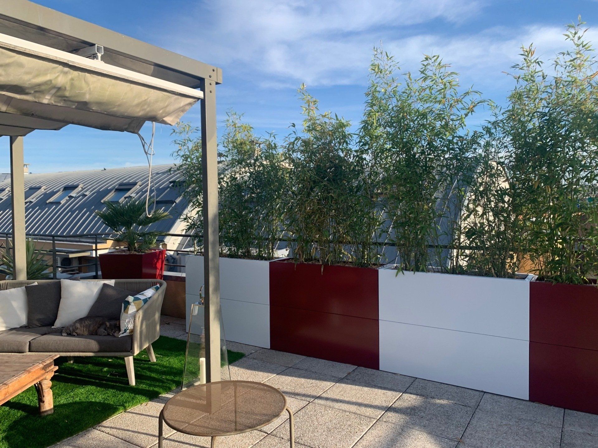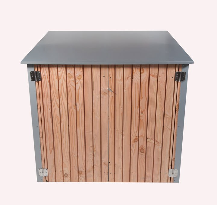 Local Technique en bois ( Pin Sylvestre avec plaque de toit et angles en Dibond Ral de couleurs au choix